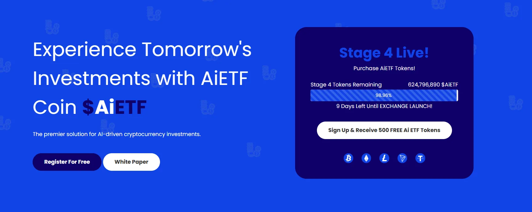 Some projects claim to be AI portfolio funds but lack transparency. For example, AiETF Token promotes multi-stage sales with bonuses up to 75% in early phases, dropping to 50% in the main ICO. Referral rewards offer 5,000 tokens for direct sign-ups and 2,500 for second-level, plus purchase matches.