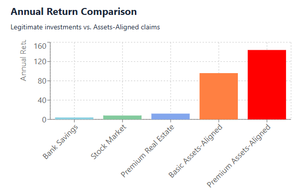 The extreme disparity between market-standard returns and Assets-Aligned promises is a definitive red flag.