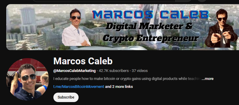 Marcos Caleb promotes multilevel marketing cryptocurrency Ponzi scams on his YouTube channel.