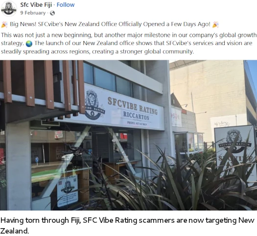 SFC Vibe Rating fits the pattern of numerous “click-a-button” app Ponzis that emerged since late 2021. These schemes typically collapse within weeks or months by disabling websites and apps without notice, locking accounts, or demanding extra “recovery” fees. Many are reportedly operated by organized crime groups from China, often from scam compounds in Southeast Asia. Fiji’s warnings align with similar alerts in other jurisdictions about task-based pyramid schemes promising high returns for simple online activities.