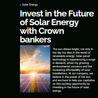By concentrating on high-growth industries like electric vehicles, cryptocurrencies, solar energy, and Forbes Top 500 firms, we at Crown Bankers invest in the future.