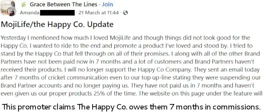 Promoters report they have not received commissions for several months, with payments drying up well before the official announcement. The shutdown appears to mark the effective end of The Happy Co.’s multi-level marketing operations.