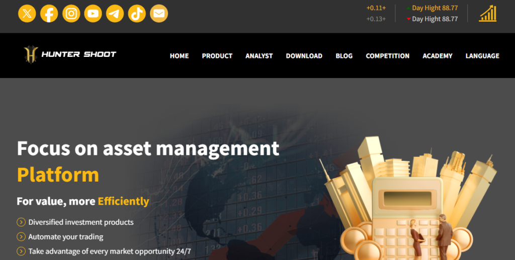 HunterShoot.com claims to be an elite asset management firm specializing in high-yield forex and crypto investments. With promises of AI-powered trading, astronomical returns, and strategic partnerships, it attempts to mimic legitimate investment platforms.