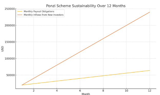 By Month 7–9, the platform needs more new investors than it can feasibly attract. Collapse is inevitable.