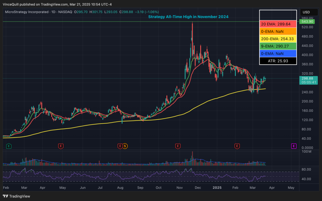 From the previous low of $231 on March 11, Strategy’s shares are now trading at over $299, up 29%.