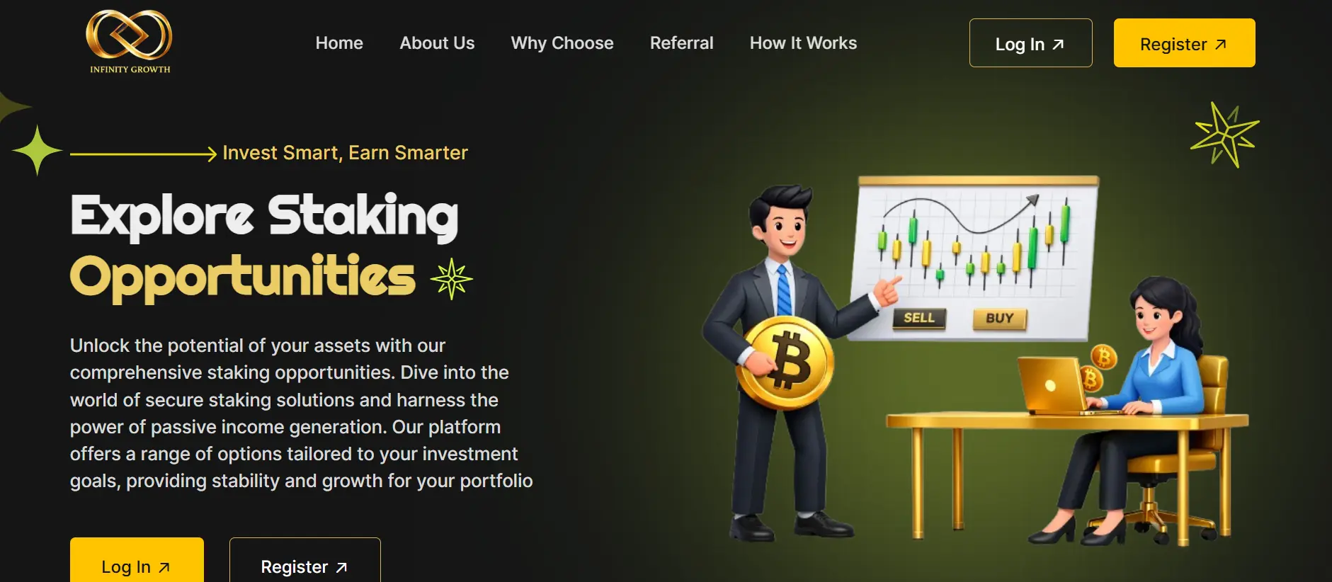 This setup rewards both personal deposits and building a large team. Earnings come mainly from new money flowing in rather than proven external trading profits. The site talks about “staking opportunities” and “professional trading,” but it never shows audited trade records or wallet proofs.