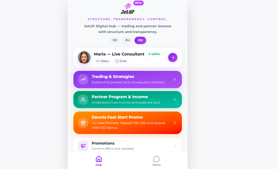 This Jet UP review shows a platform built around copy trading and a partner income model. The compensation plan offers multiple ways to earn through trading and team building. Owner details stay limited to promoters rather than verified executives, which is important to note.