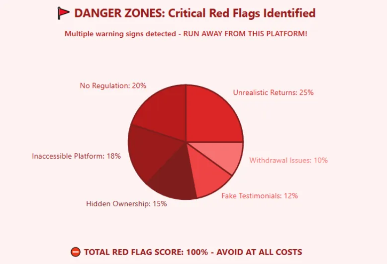 The platform presents numerous red flags, such as minimal web traffic, poor user feedback, potential phishing threats, concealed ownership, unclear hosting details, and insufficient SSL protection.