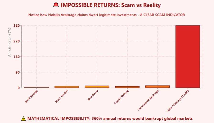 Compared to legitimate platforms like Binance (5–20% staking APY) or Kraken (4–15% APY), Nobilis Arbitrage’s claims are outliers. Regulated platforms offer transparent returns tied to market performance, not recruitment.