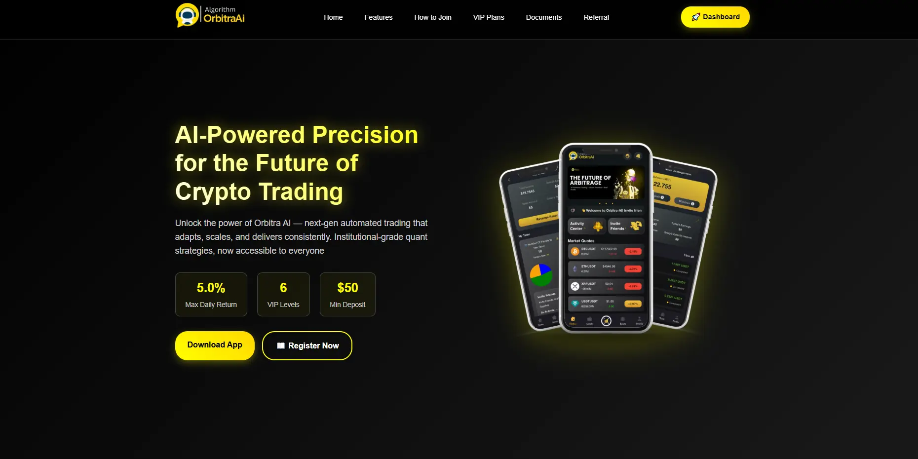 Orbitra AI positions itself as an AI-powered tool for crypto trading. It uses algorithms to predict market moves. Users deposit funds starting at $50. The system then trades automatically. It promises returns from 1% to 5% per day. The site highlights features like low-latency execution and risk management. It also includes videos on how to register and withdraw. But many reviews question its claims.