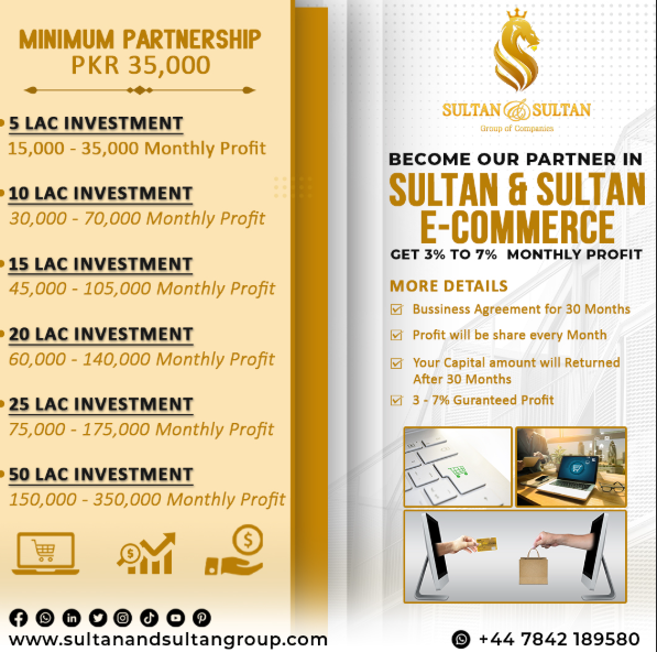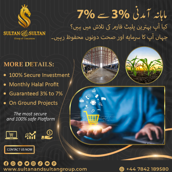 Sultan & Sultan Group of Companies specializes in providing secure and halal investment opportunities, offering guaranteed monthly returns ranging from 3% to 7% over a period of three years.