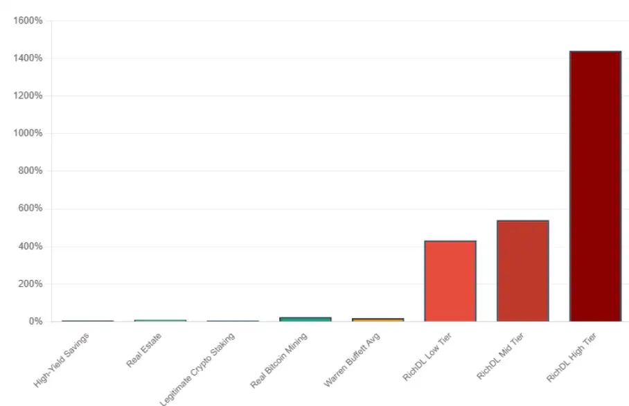 No. Real mining gives 5–20% yearly; Rich Miner promises up to 120% monthly.
