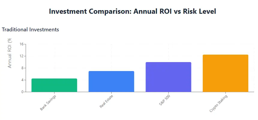 3. Choose Safer Options: Opt for index funds (8-12% ROI), REITs (6-8%), or regulated crypto staking (5-20% APY).