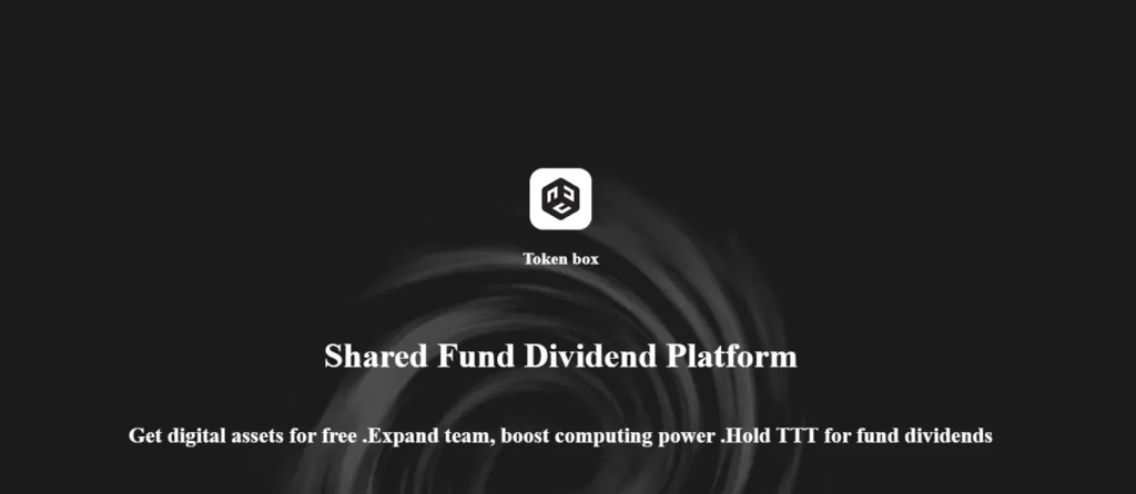 Token Box, hosted at a recently registered domain, markets itself as a shared fund dividend platform. It claims users can earn free digital assets through daily tasks and hold platform tokens (TTT) for dividends. The platform emphasizes team-building and invite codes, raising questions about its sustainability and legitimacy.