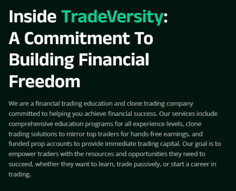 TradeVersity.io is an online platform claiming to offer trading education, clone trading, and funded proprietary accounts. However, this TradeVersity review reveals multiple red flags, including unsustainable ROI claims and a lack of transparency.
