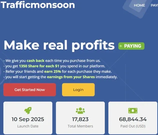 On September 5, 2025, scammers registered trafficmonsoon.org again, launching a second revival with a nearly identical pitch: $1 AdPack investments promising up to $50 ROI, plus a 25% single-level referral commission, per. The site features a fictional CEO, Adrian Gale Mercer, depicted with an AI-generated image based on Scoville’s likeness, claiming to “revive the vision” of Traffic Monsoon, per. The platform cites “traffic arbitrage” for payouts, but analysis shows no legitimate ad business, mirroring the original Ponzi mechanics, per. Traffic is low, with monthly visits under 1,000, primarily from the U.S. and Eastern Europe, per SimilarWeb estimates. No regulatory shutdown has occurred yet, but FTC monitoring for MLM Ponzi indicators is likely, per.