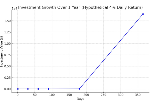 Vextor.trade promises daily returns around 4%, equating to unrealistic annual returns exceeding 480%, which is financially unsustainable.