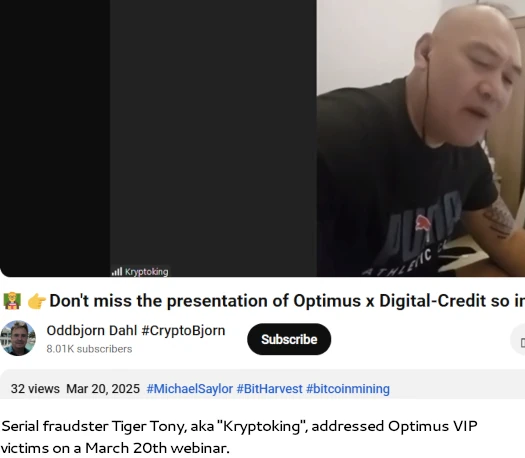 According to a webinar on Optimus VIP marketing on March 20th, which promoter “Tiger Tony” presented;