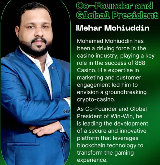 More investigation shows marketing materials that list Mehar Mohiuddin as Win-Win Global’s co-founder and Global President.