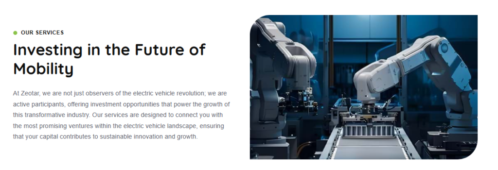 Zeotar specializes in creating EV charging connections and lithium batteries for environmentally friendly transportation options.